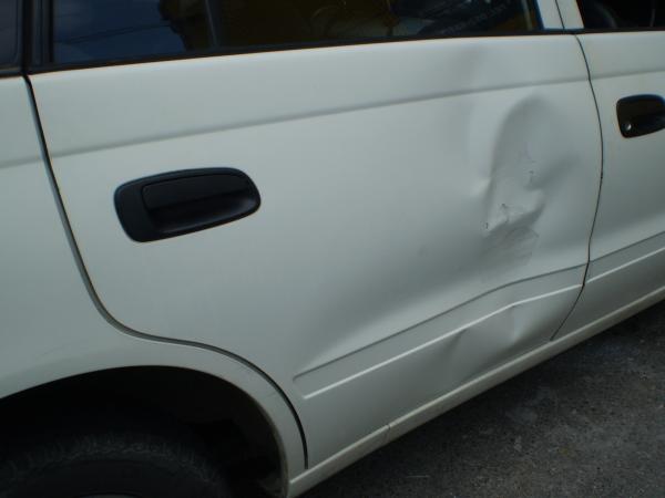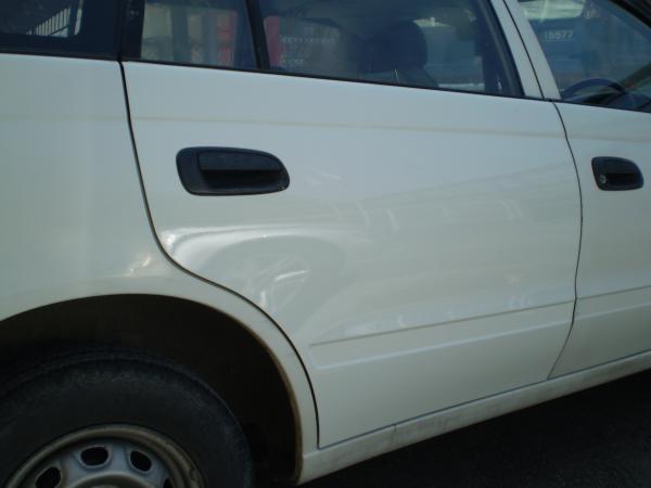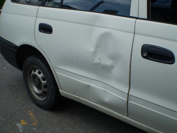このヘコミは、板金するより中古に取替えたほうが安いです。